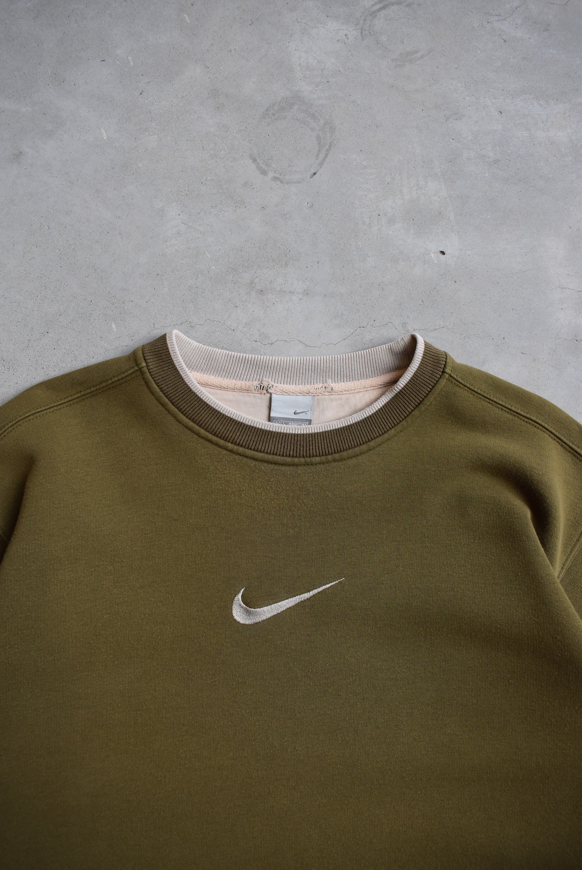 Nike Olive Embroidered Swoosh Crewneck — 1990s (L)